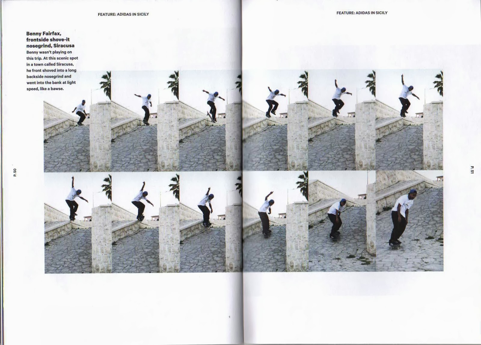 - These sequence shots are really effective at capturing the movement and the trick performed. As they are quite busy images the designer has placed them over a double page spread.